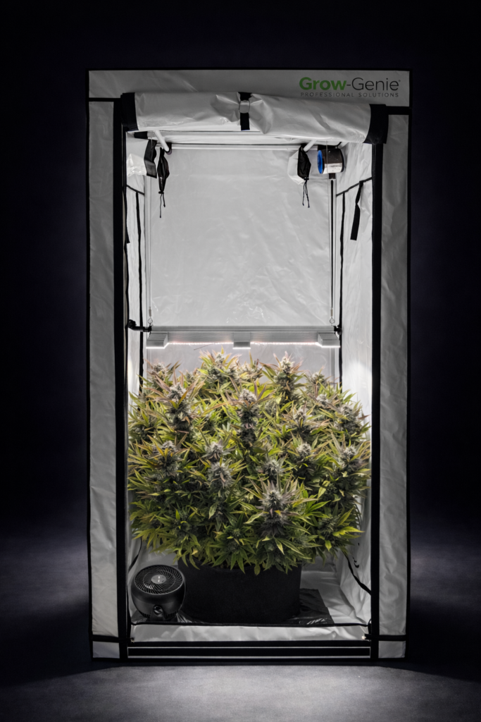 Das Set ist ein komplettes Indoor-Grow-Starterpaket für eine Fläche von 100 × 100 × 220 cm.
